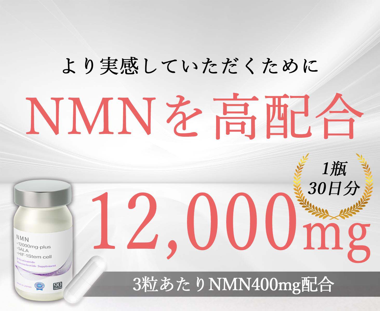 1瓶に90粒で合計12,000mgのNMNがたっぷり配合されています。