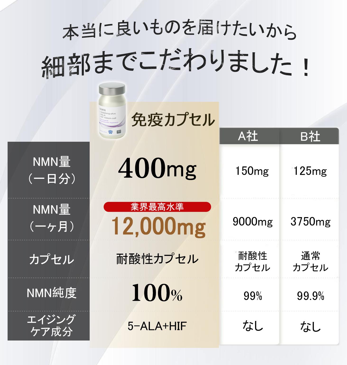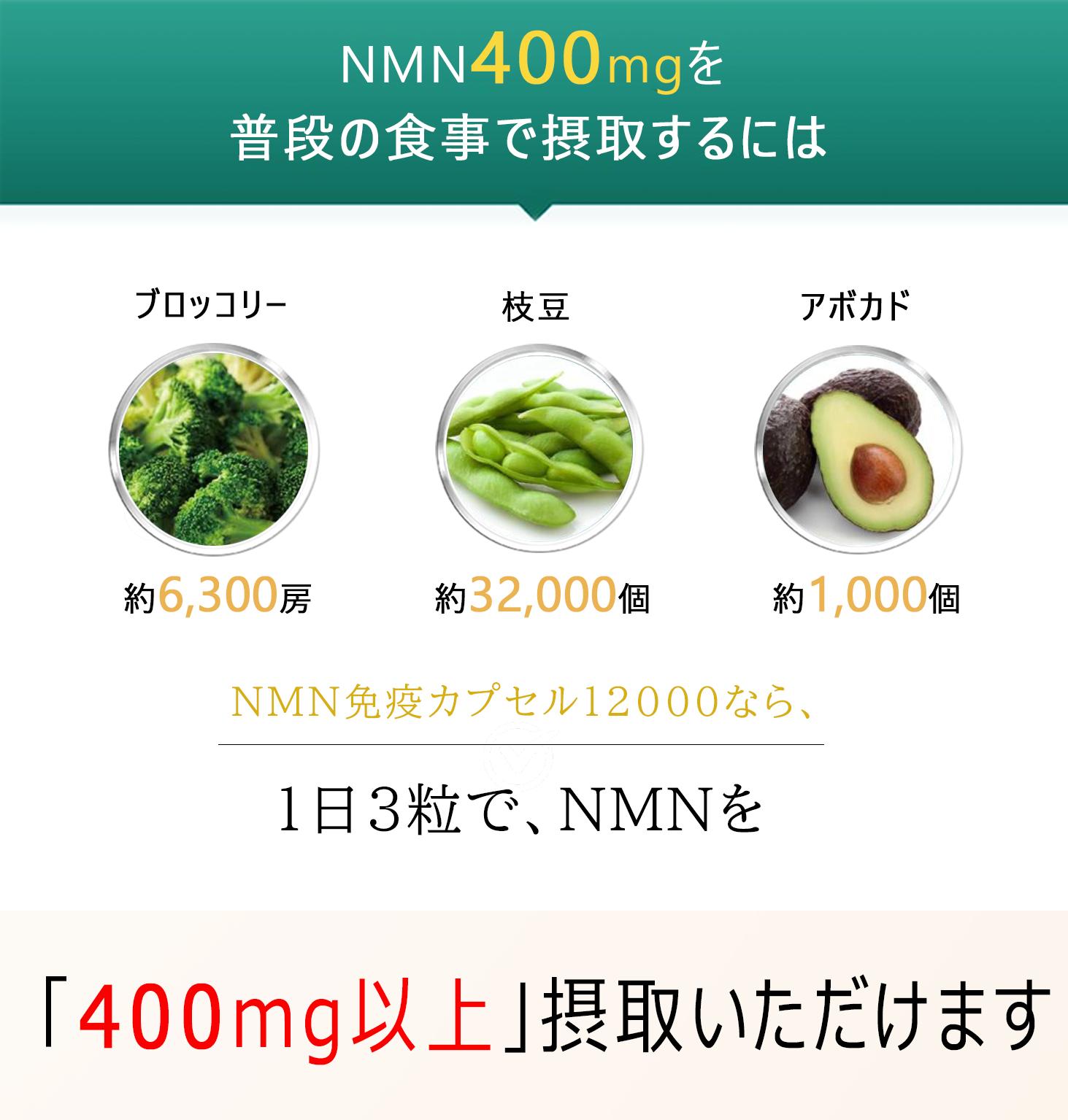 より実感していただくために、3粒あたり、400mgのNMNを配合しました。