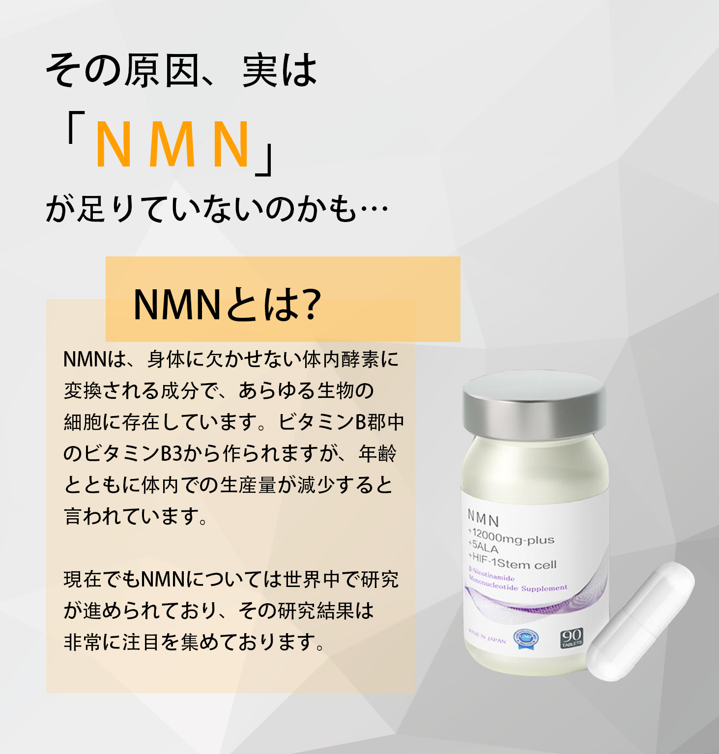NMN(ニコチンアミドモノヌクレオチド)とは、ビタミンB3に含まれる成分の一つで、